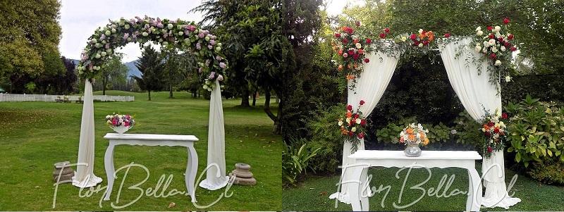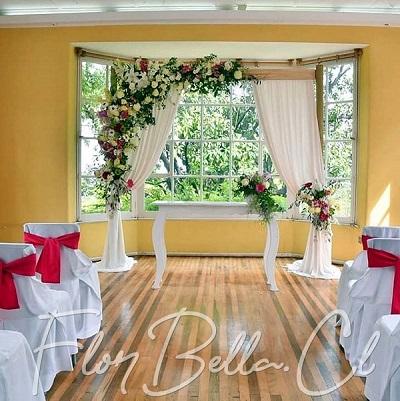 Este es un arco en armazón de fierro o madera que puede o no estar cubierto con telas o con macramé. La composición de este arco está hecho con flores de temporada Adornan además hermosas y frescas flores en colorimetría elegida por los novios. El follaje dependerá del estilo que los novios deseen darle a su arco, entre los que se encuentran avellanos, eucaliptus con flores finas entre las que se puede encontrar rosas importadas, hortensias, lisianthus, gerberas, y algunas flores silvestres para hermosear el arreglo y dar un toque romántico y de glamour.