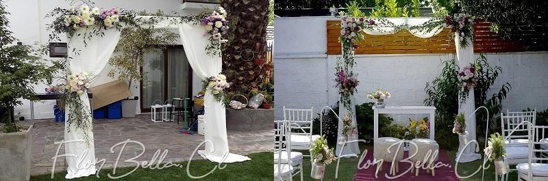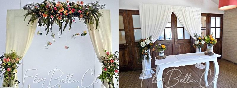 Arco floral en cualquier estilo (con telas, macramé, flores)